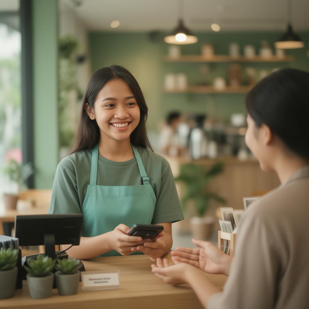 Antarmuka bersih, cepat, dan dirancang untuk dipakai sehari-hari di kasir.